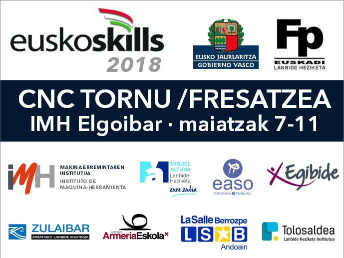 Maiatzaren 7-11 bitartean "Euskal Lanbide heziketako olinpiadak" bezala ezagutzen diren EuskoSkills2018ko CNC Torneatzea-Fresatze probetan parte hartuko dute 8 ikastetxetako 21 ikaslek IMHko lantegian.