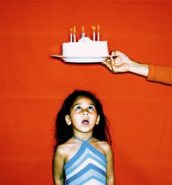 . Escalamos para dejarlo más pequeño, y las movemos hasta que queden justo encima de la tarta, y no tapando a la niña.