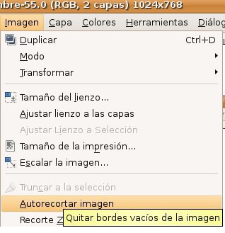 Ahora vemos que tenemos el fichero demasiado grande para la imagen que tenemos. Tenemos la opción de decir a Gimp que recorte la imagen Automáticamente: