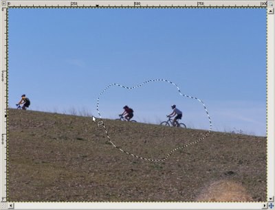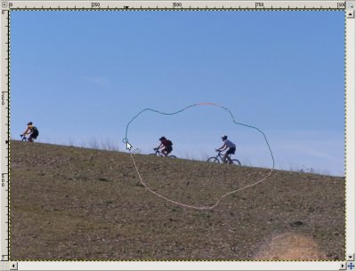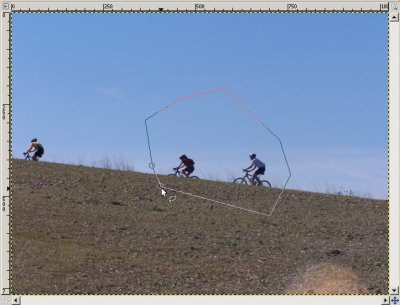 El lazo es una buena herramienta para hacer un esbozo inicial de una selección. Los usuarios avanzados hallan conveniente hacer un primer esbozo con el lazo y luego cambiar al modo de máscara rápida para trabajar en detalles.