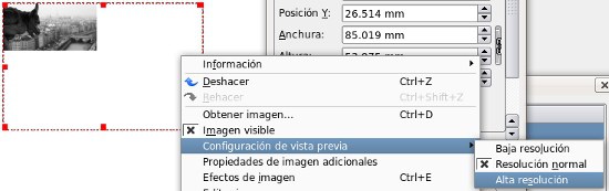 Clic derecho sobre imagen: Configuración de vista previa: Alta resolución