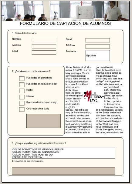 Crea un nuevo fichero llamado formulario.sla de una página tamaño A4 y diseña el siguiente formulario: