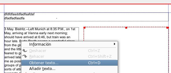 Vamos a meter texto del fichero externo. Seleccionamos la caja de texto que queremos y clickamos con el botón derecho sobre dicha caja: Obtener Texto