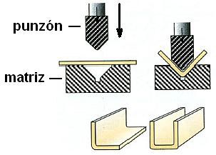 Planchas, tubos o alambres son deformados entre un punzón y una matriz. Si el radio de curvatura de la deformación es pequeño, se llama plegado, y si es grande curvado.