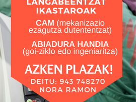 ULTIMAS PLAZAS en los cursos para desempleados de CAM, ALTA VELOCIDAD y ELECTROMECÁNICA