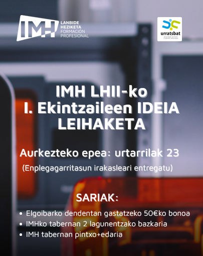 IMH LHIIko Ekintzaileen Ideien Lehiaketaren lehen edizioa antolatu dugu 1. eta 2. mailako ikasleentzat .