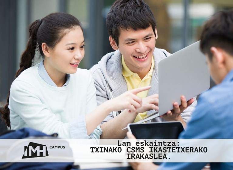 IMHn lan egin: Txinako CSMC ikastetxerako irakasleaIMH Campusek Tianjin CSMC Institute ikastetxerako irakaslea behar du.https://www.imh.eus/eu/albisteak/imhn-lan-egin-txinako-csmc-ikastetxerako-irakasleahttps://www.imh.eus/eu/albisteak/imhn-lan-egin-txinako-csmc-ikastetxerako-irakaslea/@@download/image/1.jpg
