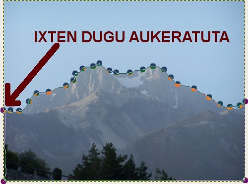 Klik eginez, aukeratu nahi dugun irudi zatiaren inguruan puntuak marraztuko ditugu. Irudiari egokituz, aukeratu nahi dugun irudi zatiaren ingurua automatikoki eratzen da.