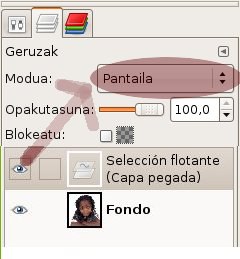 - Batuketa: geruzen balioak gehitu egiten dira. Nahiko argitzen du irudia; gehiegi argitzen badu, opakutasun txikiagoa erabil daiteke.