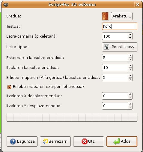 Gimp programari esker, hainbat logotipo sortuko ditugu automatikoki. Testua pixka bat aldatu besterik ez dugu egin behar.Adibide bat ikusiko dugu (Gimp-en bitartez, askoz logotipo gehiago sor daitezke), eta, gero, logotipoa beste irudi batean nola txertatzen den ere ikusiko dugu.