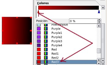 Triangelu txikiaren gainean jartzen gera, eta gorriz jartzen da: orain kolorea alda dezakegu, eta horrela degradatua beste kolore batekin egiten dugu. Adibidez, lehenengo puntua Red3 kolorekoa dela jarriko dugu: