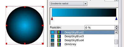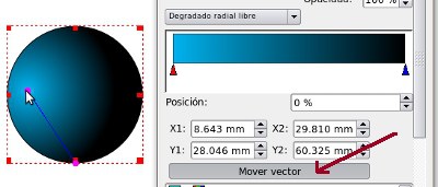 Gradiente Lineal librea eta Gradiente biribila librea. 4 balio agertzen dira, aldatzeko kolorea dagoen puntua. Aldatu bektorea lekuz aukeratzen badugu, arratoiarekin egin dezakegu aldaketa hori. Horrela argi-puntua alda dezakegu.