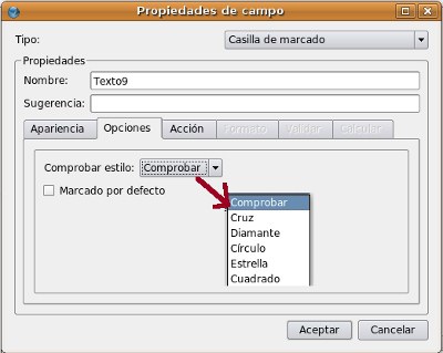 Egiaztatu estiloa: aukeratu dezakegu ze irudi mota nahi dugun kontrolerako