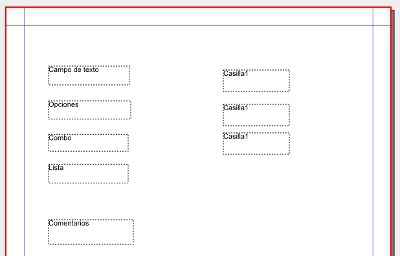 Nahi dugun kontrola aukeratu eta sartzeko, errektangelu bat marraztu behar dugu, formekin lan egiten dugun moduan. Sartzerakoan ingurune urdin bat besterik ez dugu ikusten, PDF sortzen dugunean ikusiko dugu kontrola martxan.
