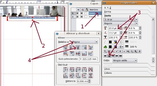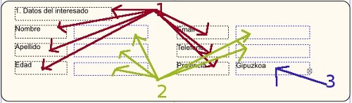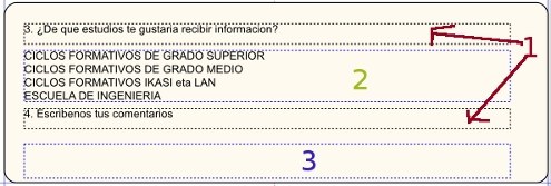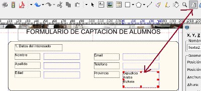 Texto geruzan (1) egonda, testu-markoa sortzen dugu. Barruan FORMULARIO DE CAPTACION DE ALUMNOS (2) idazten dugu.