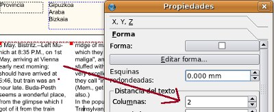 2 zutabeak dauzkala jartzeko: Propietateak: Forma: Zutabeak: 2