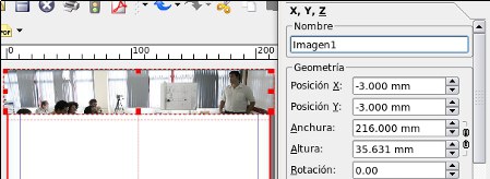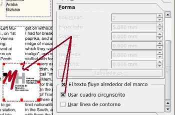 Irudi-marko bat sartzen dugu, IMHren logoa jartzen dugu eta Propietateak: Forma-n Testua markoaren inguruan egoteko jartzen dugu